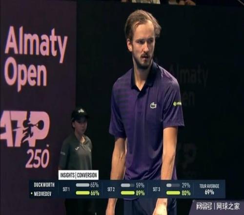 就在刚刚,ATP250阿拉木图站首场男单半决赛结束了最后的争夺,2号种子梅德韦杰夫经过三盘激战,最终以6-7(8)6-3 6-2逆转从资格赛突围的澳大利亚黑马球员达克沃斯,职业生涯第40次闯入巡回赛决赛。这场胜利不仅让梅德韦杰夫本赛季第二次跻身决赛,也使他成为1990年后出生选手中首位达成ATP巡回赛40次决赛纪录的球员。